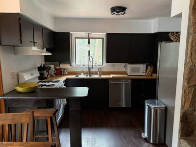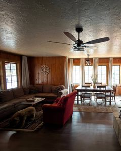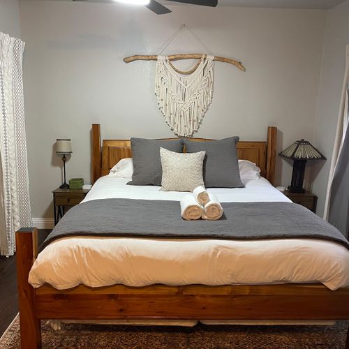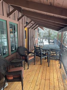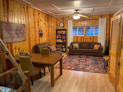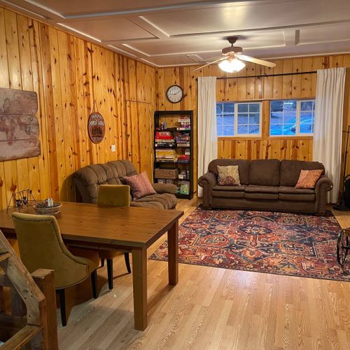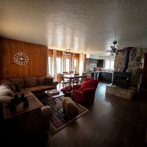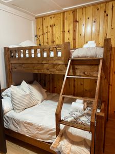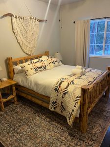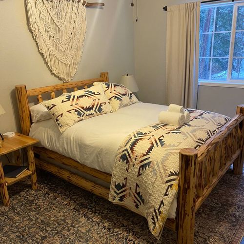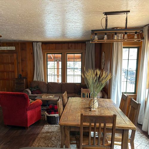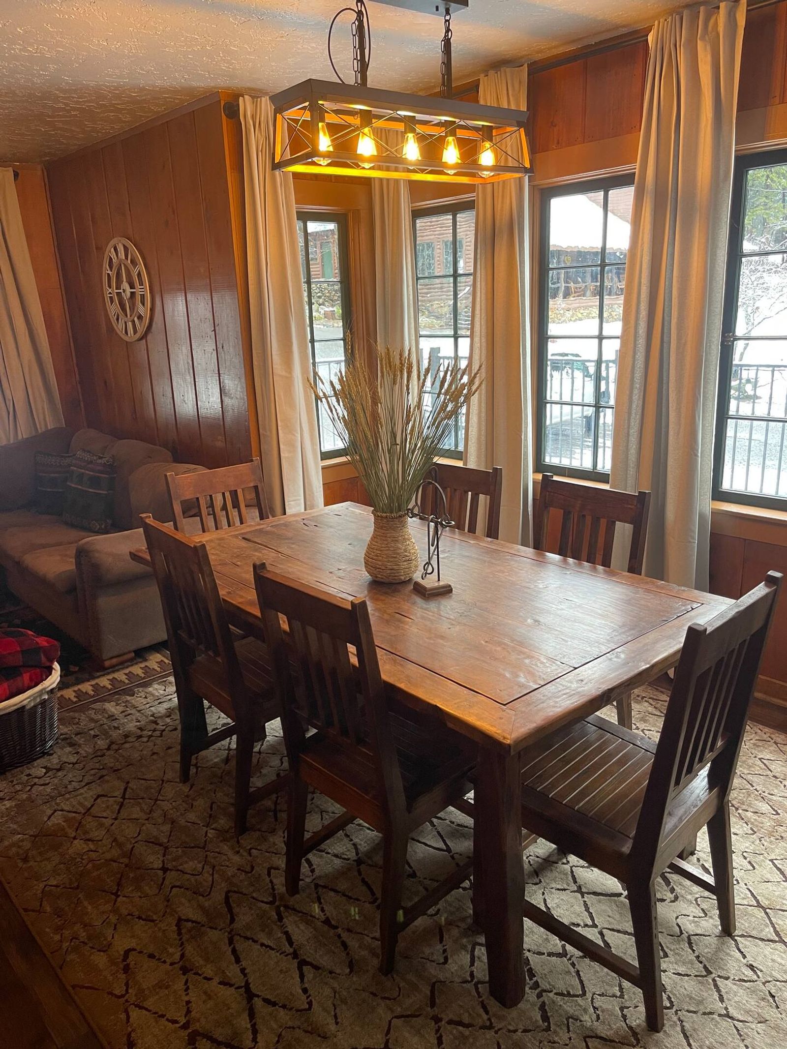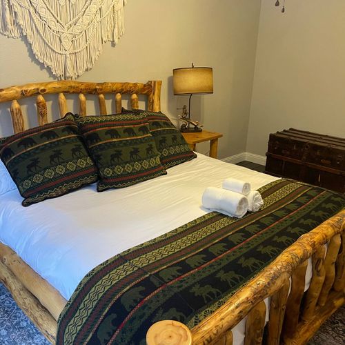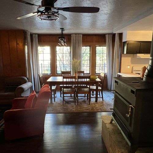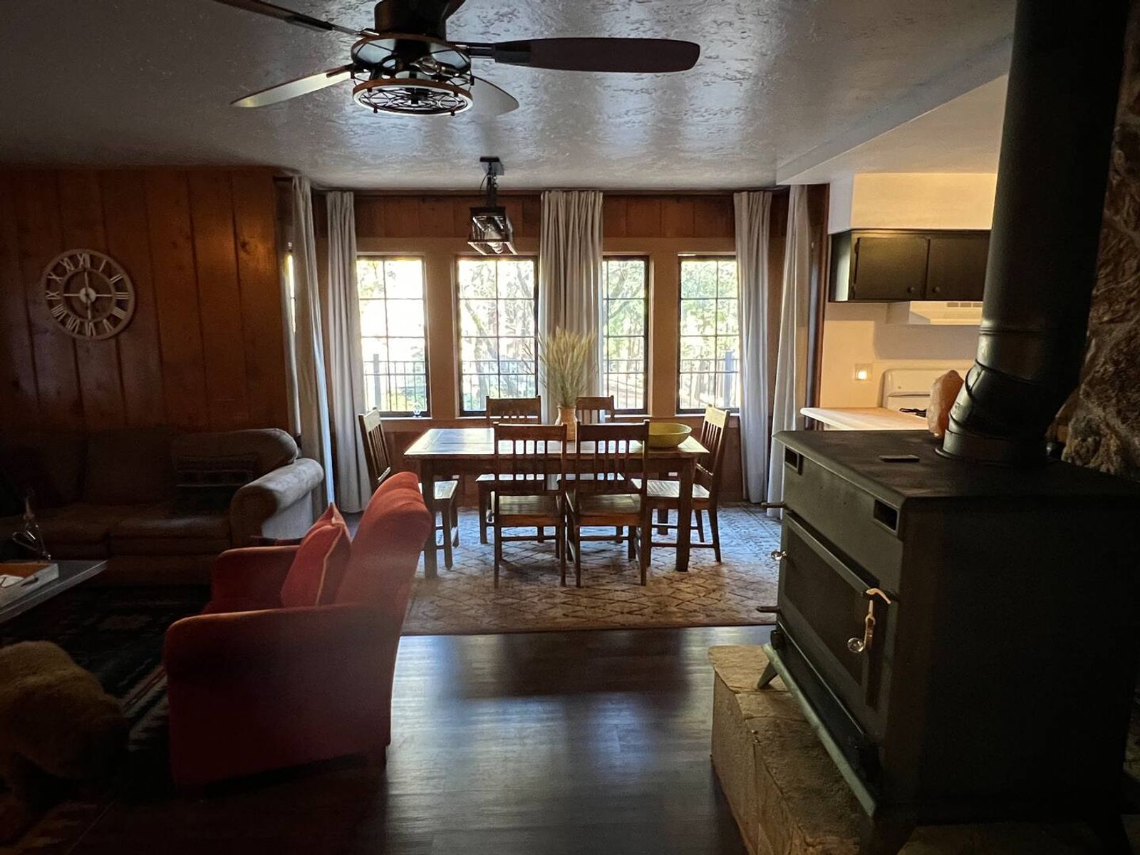 This large home was originally the restaurant for the historic Forest Lodge Resort when the property was active through the 1920's-1960's. Over time it was renovated into a home for the caretakers of the property and further renovated for their children into what we now affectionately call the “Bunk House”. The beautiful rustic exterior features a large wrap-around porch and landscaped grass yard, free flowing to the great outdoors. The interior has been thoughtfully updated honoring the remaining historical elements while modernizing all the creature comforts you desire for a serene getaway.